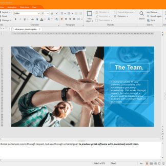 With easy handling and intuitive UI design, Present is the go-to replacement for PowerPoint. Version 9 features all-purpose dynamic slide transitions that are greatly compatible with PowerPoint! There is now an element for rotating table cells on the Table ribbon and fullscreen mode is more versatile thanks to togglable rulers. Create stunning and informative presentations without effort and enjoy great compatibility with MS PowerPoint!